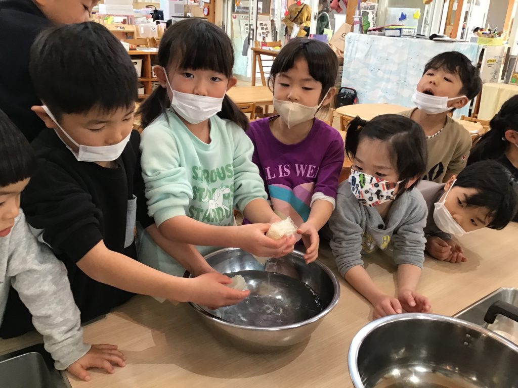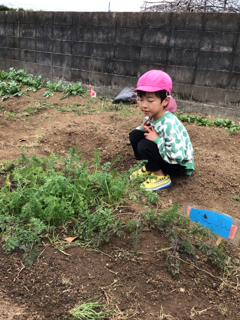 野菜の栽培や様々なクッキングを通して食に興味をもてるようにしています。人参の葉を間引きした際には作れる料理を考え、クッキングをして食べる喜びを味わっていました。
