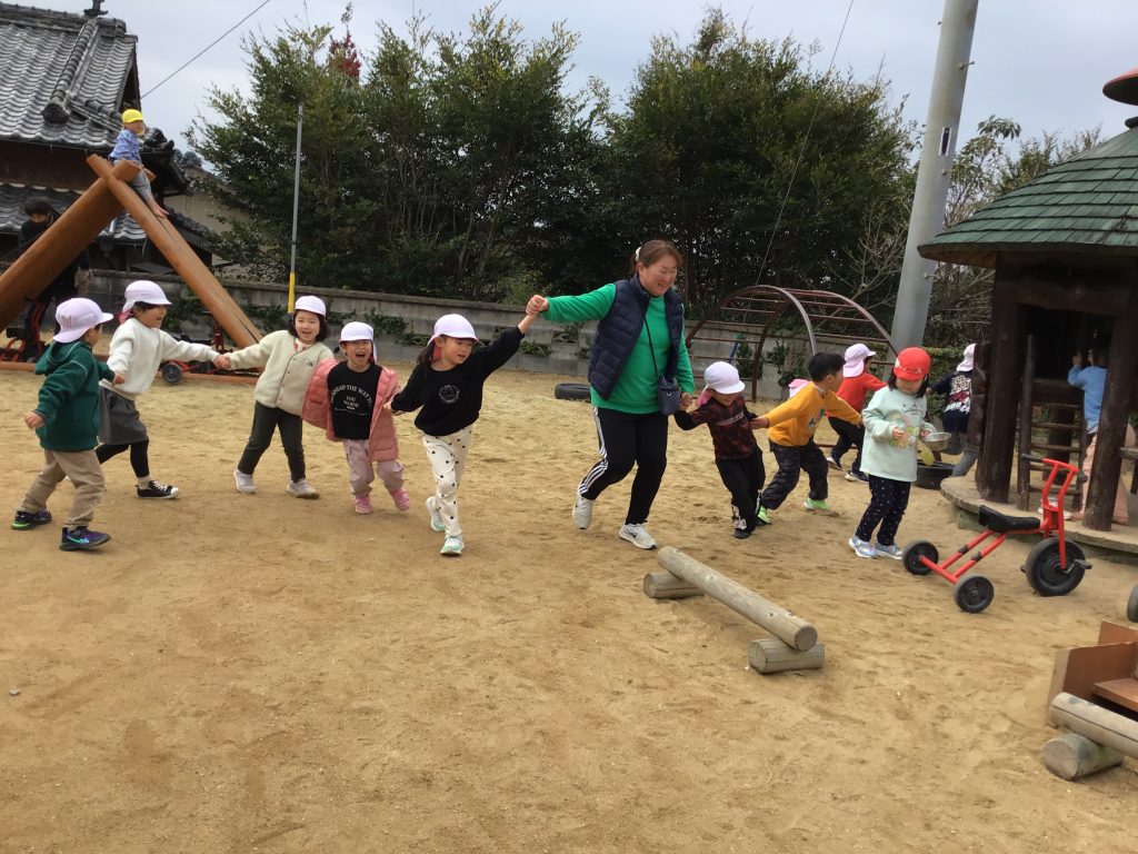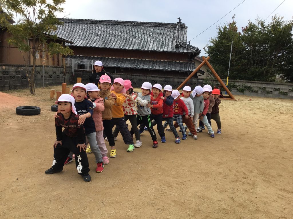 集団遊びを楽しんでいます。鬼ごっこや手つなぎ鬼、ボール通しなど様々な集団遊びを通してルールを守って遊ぶ楽しさを感じています。