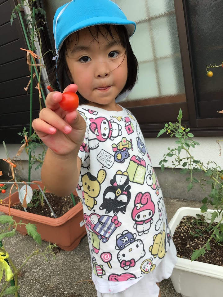 皆で育てたミニトマトを収穫して喜びランチの際に切って食べました。また、夏の疲れや暑さで食欲が落ちてしまう園児もいましたが、「お皿ぴかぴか、かっこいいね」と声を掛けると嬉しそうに食べていました。食物を育て収穫する喜びや「食」への興味関心が広がるような活動を大切にしています。
