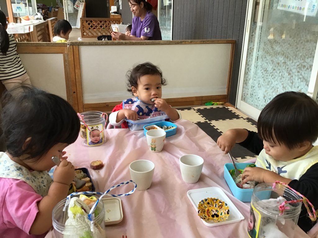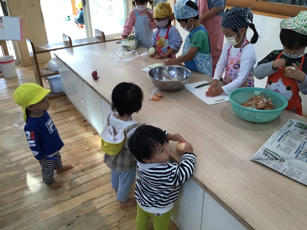 テラスで外気の心地よさを感じながら食事を楽しんだり、忍者の広場で収穫したサツマイモを使った豚汁づくりの様子を見せてもらい旬の野菜にも興味が広がっていました。