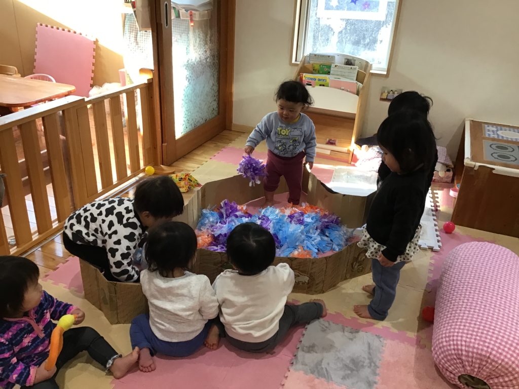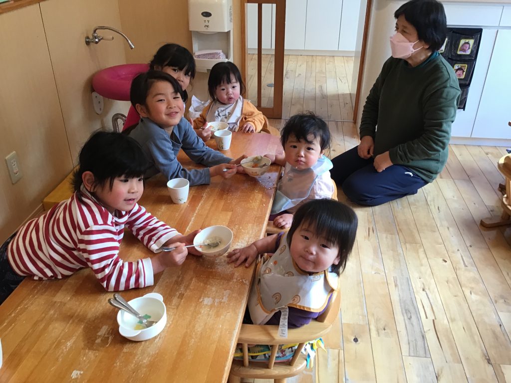 お正月遊びから節分遊び、七草粥の炊き出しへの参加など一月ならではの行事に触れながら遊びました。ひなチームの園児たちも生活や遊びの中で伝統的な文化や行事に参加する機会を大切にしており、その中で伝統的な文化に触れ親しみ、身近なものとして興味・関心を広げ始めるきっかけとなっています。