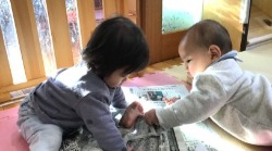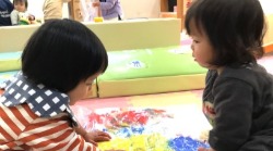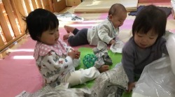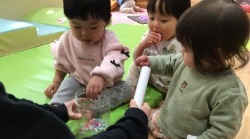 月齢が低いお友達も新聞紙に興味津々で手を伸ばし、くしゅっと握って感触や音を楽しむ姿が見られました。