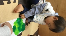 クリスマスツリーや干支にちなんだへびの製作や葉っぱと絵の具でフィンガーペインティングをして楽しみました。