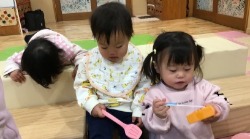 ままごと遊びを通して、お友達や保育教諭等とのやり取りが増えたり、新しい環境に慣れ意欲的に体を動かして遊んだりと一人一人たくさんの成長が見られました。