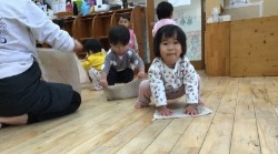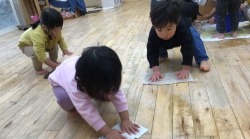 年末年始のお話を聞き、大掃除をしました。「お部屋をきれいにしたら神様が来るんだよ!」と言いながら、棚の中や床を意欲的に掃除していました。