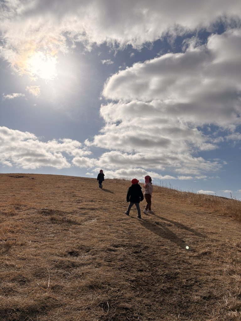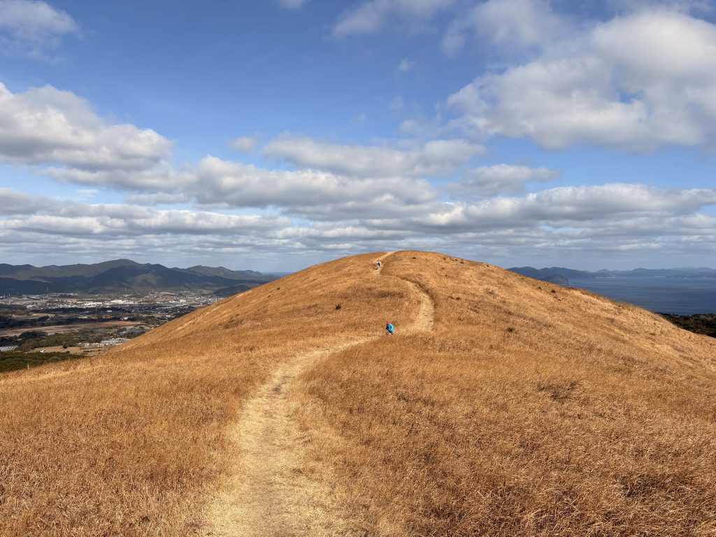 自分たちでどこに行きたいかを決め「何をしたい」「何がいる」「準備しよう」と皆で意見を出し合っています。その中でも園児から大人気な五島のシンボル鬼岳へ。一山超えて、二山超えて雲に手が届きそうでした。高い頂上の一本道。遮る物もなく風が吹きつけるのでよろけないかと大人は少しヒヤッとしますが、園児たちは怖がりもせずずんずん進んでいきました。